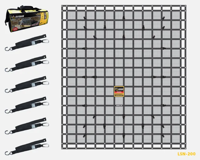 The LSN-200 is our second most popular net in the range. It is designed for the Single Cab market and trailers up to 10ft, it is slightly bigger than a single cab tray at 3000 x 2600 mm, but that is so you can allow for a load so the net can go up and over. This net has come with 6 x 1m straps and comes with a heavy duty carry bag. The LSN-200 is load rated at 1000KG.