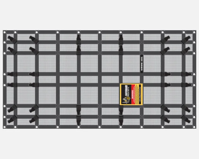 Minimum Tray size: 1.20 x 0.50m, Mesh Coverage of 1.835 x 0.935m, Overall Dimensions: 1.835 x 0.935m with 34 eyelets & 32 tabs.